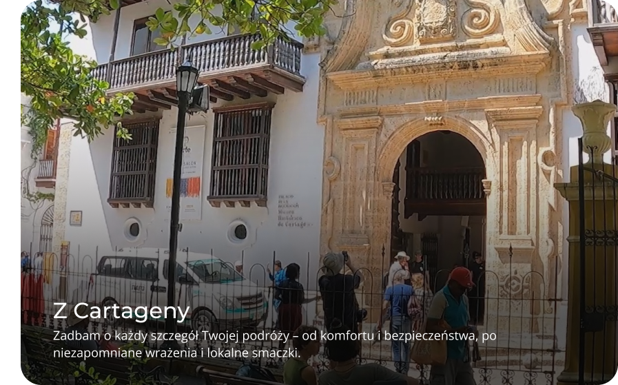 Zadbam o każdy szczegół Twojej podróży – od komfortu i bezpieczeństwa, po niezapomniane wrażenia i lokalne smaczki, których nie znajdziesz w katalogach biur podróży. Ze mną nie jesteś tylko turystą – jesteś gościem, dla którego Kolumbia staje się prawdziwą przygodą życia.