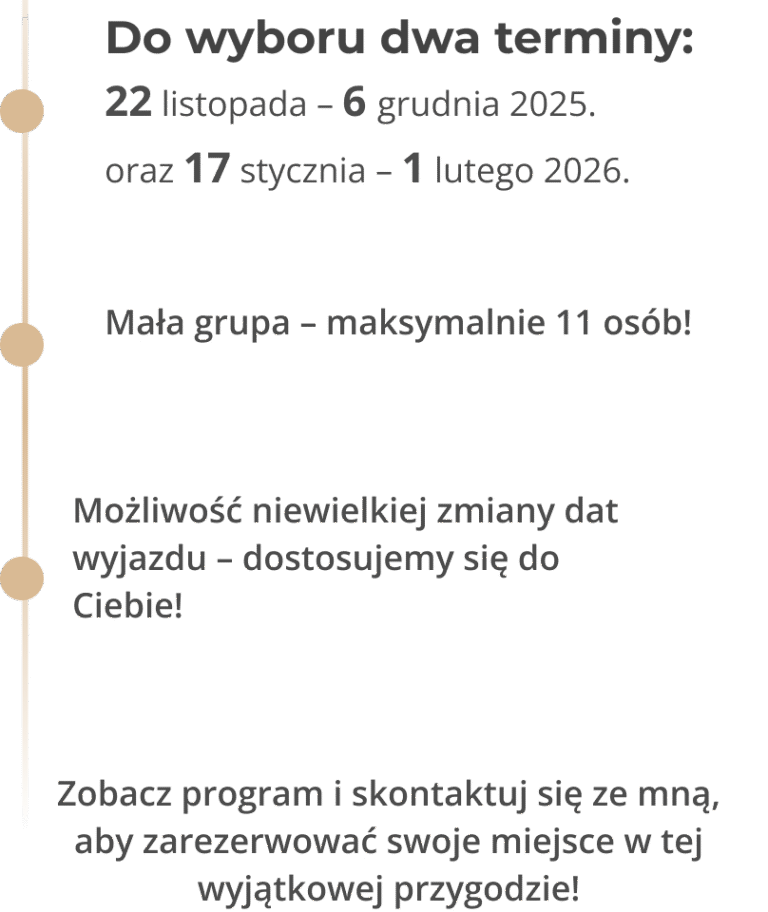 Zadbam o każdy szczegół Twojej podróży - od komfortu i bezpieczeństwa, po niezapomniane wrażenia i lokalne smaczki.